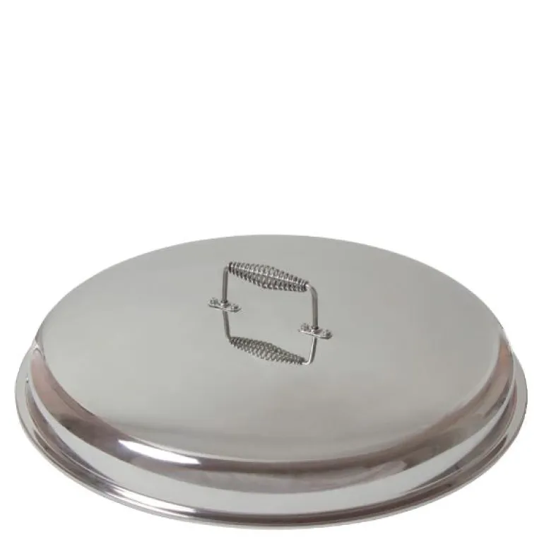Dette rustfrie stållokket fra Hällmark er designet spesielt for stekehellen på 58 cm og er utstyrt med solide håndtak i forkrommet fjærstål. Lokket hjelper til med å holde varmen og reduserer koketiden, noe som gjør det ideelt for retter som krever lengre tilberedning, som gryteretter, eller for dampende raske delikatesser som skalldyr og grønnsaker. Håndtakene er inspirert av gamle vedovners robuste design og holder seg kjøligere enn selve lokket, slik at det er enkelt å håndtere under matlagingen.
