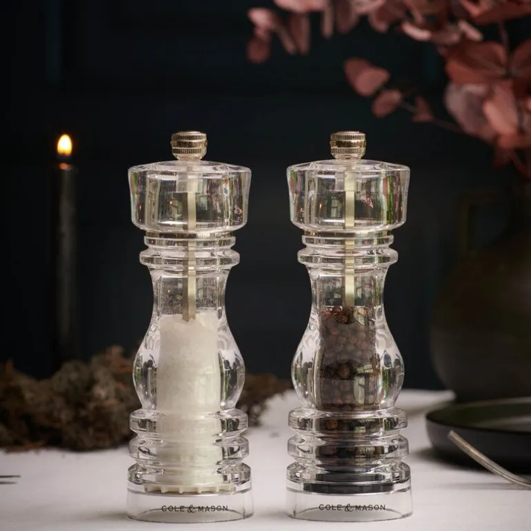 Pepperkvern, London 18 cm i klar farge fra Cole & Mason. Elegant kvern til kjøkkenet ditt. Juster enkelt malingen fra fin til grov ved å vri på knappen på toppen av møllen. Laget av høyverdig akryl. Kvernen kommer uten krydder.