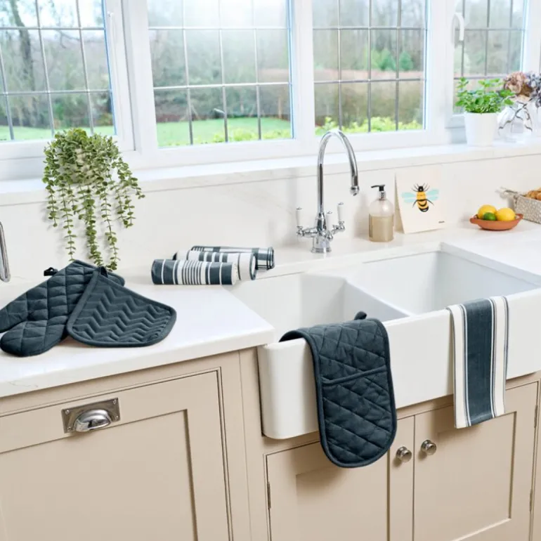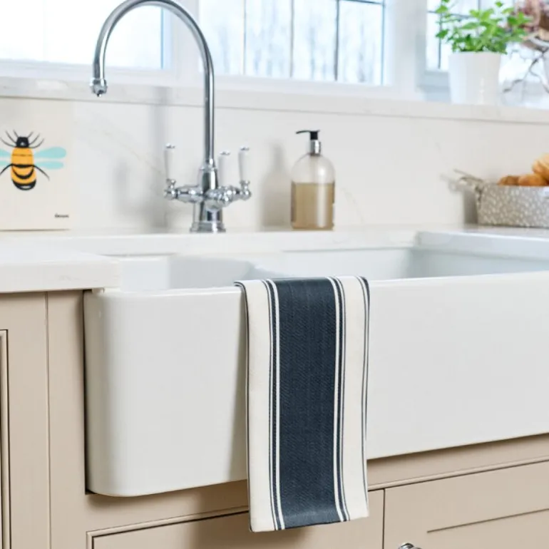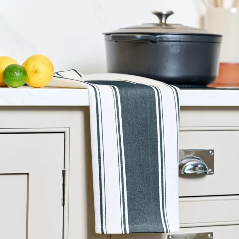 Love Colour kjøkkenhåndkle fra Dexam bringer en elegant touch til kjøkkenet ditt med sin marineblå stripe og klassiske striper i jordnære toner. Den praktiske størrelsen på 70×45 cm gjør det velegnet til alt fra tørking av oppvask til rengjøring av overflater. Det tidløse designet gjør dette håndkleet til et flott tilskudd til både moderne og tradisjonelle kjøkken.