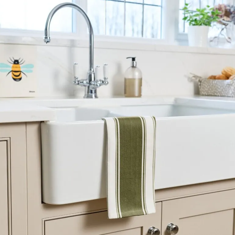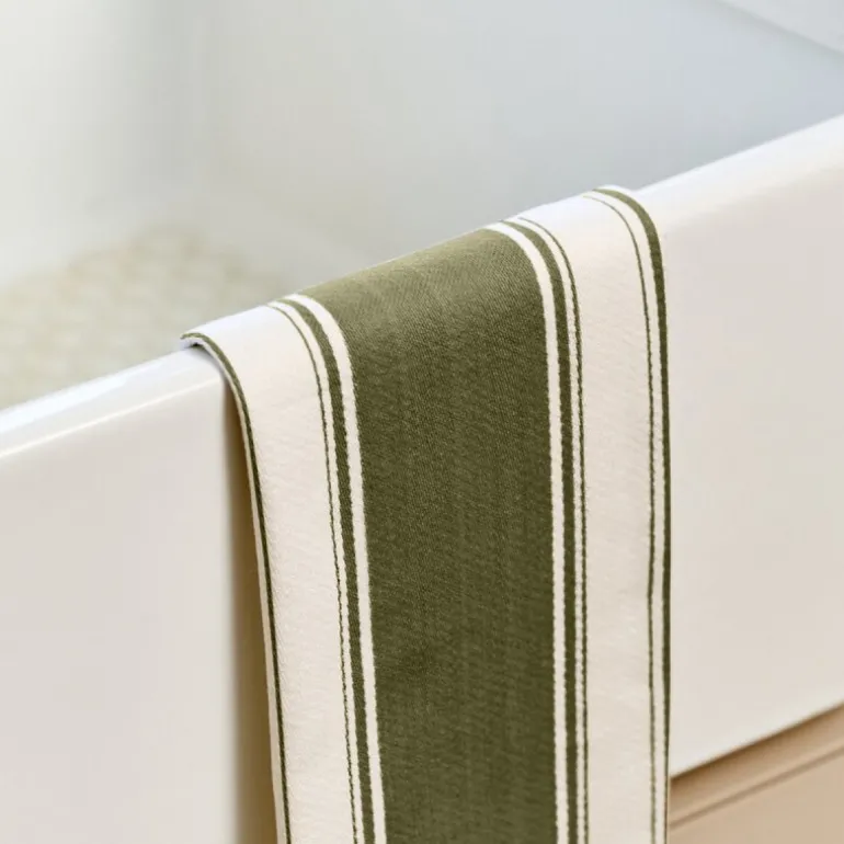 Love Colour kjøkkenhåndkle fra Dexam er en elegant løsning for daglige kjøkkenoppgaver. Det stripete designet i jordnære toner, med en diskret olivengrønn stripe, gir håndkleet et klassisk og sofistikert uttrykk. Den generøse størrelsen på 70×45 cm sikrer at det enkelt takler alt fra tørking av glass til rengjøring av kjøkkenbenken.