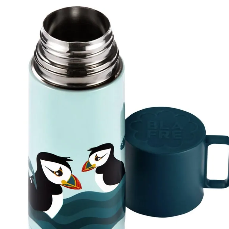 Denne termosen fra Blafre, med et sjarmerende lundefuglmotiv og en kapasitet på 350 ml, er et praktisk og dekorativt tilbehør til både varme og kalde drikker. Laget i rustfritt stål, er den slitesterk og lett å rengjøre takket være en enkel skrukork i én del. For de som ønsker ekstra bekvemmelighet, kan en kork med trykknapp kjøpes separat. Termosen er del av Blafres lekne sortiment og kan matches med matbokser og tinnbokser i samme designserie. En flott løsning som passer perfekt til både tur, skole og hverdagsbruk.