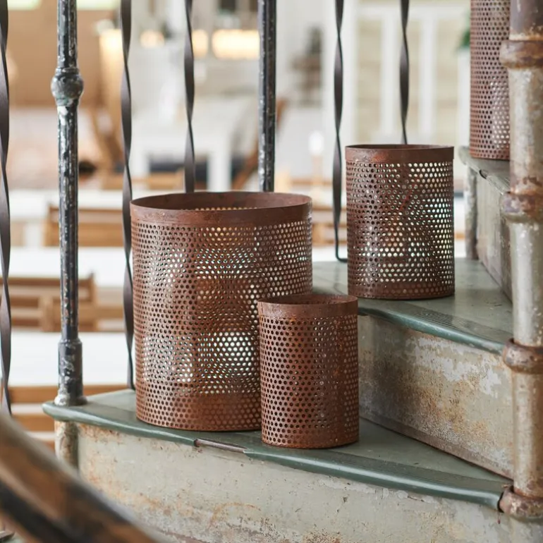 Denne lykten i rustet metall er designet for utendørs bruk og har en stilren sylinderform som gir et moderne preg. Den rustede overflaten gir lykten et røft og industrielt uttrykk, noe som tilfører karakter og sjarm til enhver uteplass. Perfekt for å skape en stemningsfull atmosfære i hagen, på terrassen eller balkongen, kombinerer denne lykten funksjonalitet med estetisk tiltrekningskraft. Med sin robuste konstruksjon og unike design er den et ideelt tilskudd for å lyse opp dine utendørs områder på en stilfull måte.