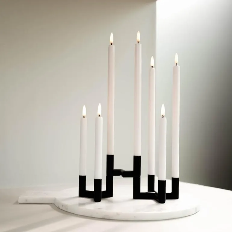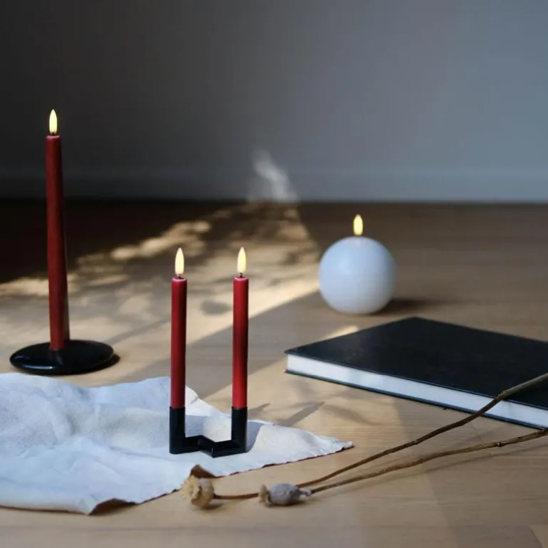 Uyuni lighting lager kunstige stearinlysene med LED-flamme og batteri. Som er et trygt alternativ til de levende lysene. Det er også enda bedre for inneklimaet, da de ikke gir sot fra flammen. Lysene er allergivennlige og er trygge for små barn og kjæledyr.