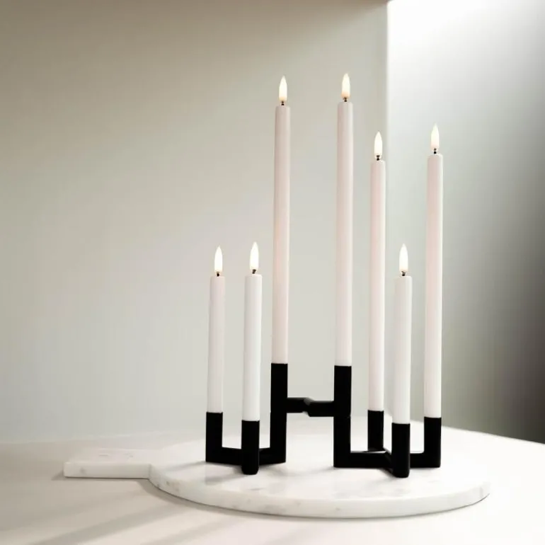 Uyuni lighting lager kunstige stearinlysene med LED-flamme og batteri. Som er et trygt alternativ til de levende lysene. Det er også enda bedre for inneklimaet, da de ikke gir sot fra flammen. Lysene er allergivennlige og er trygge for små barn og kjæledyr.