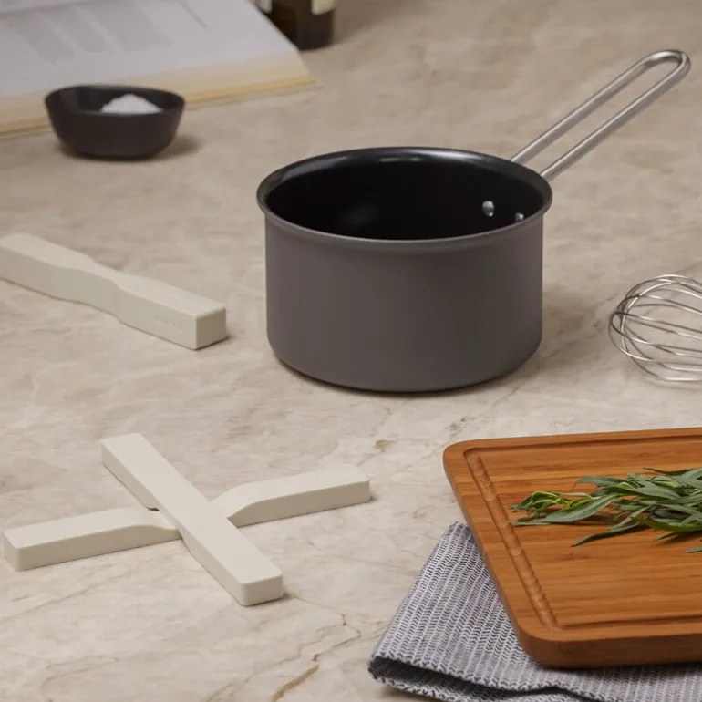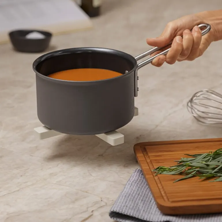 Underlaget er laget av varmebestandig silikon som beskytter bord og overflater effektivt mot varme. Når det ikke er i bruk, kan bordskåneren foldes sammen for kompakt oppbevaring i kjøkkenskuffen, noe som sparer plass og holder kjøkkenet ryddig.