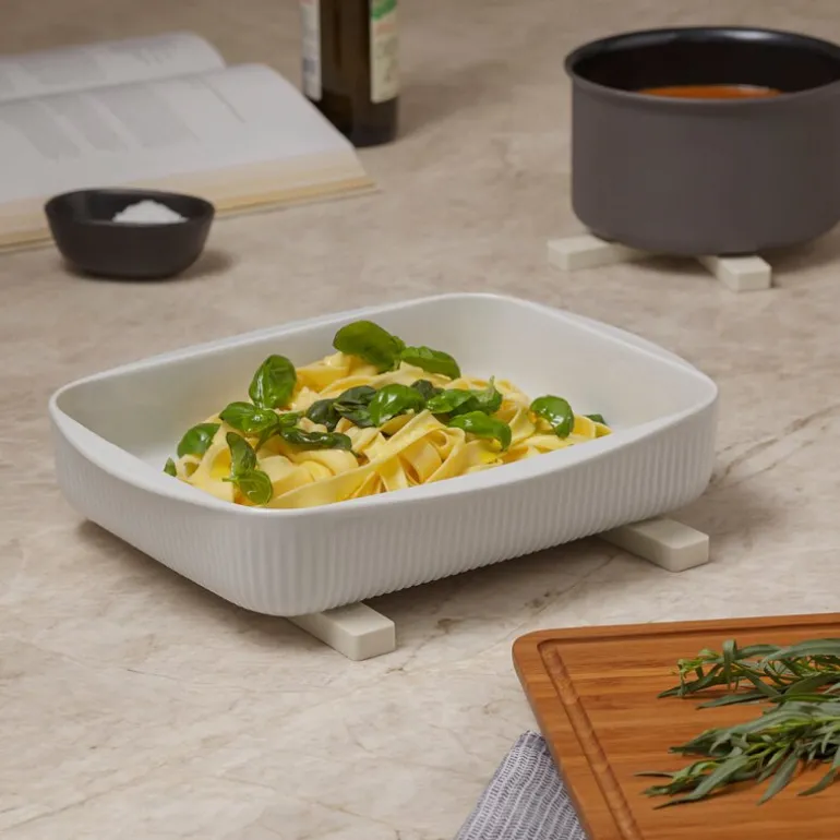 Magnetisk gryteunderlag coconut fra Eva Solo er en fleksibel og praktisk bordskåner som tilpasser seg ulike behov. Den kan legges i kryss under gryter og mindre fat, eller deles i to for å støtte større fat og langpanner. De innebygde magnetene gjør at underlaget følger gryten når den flyttes rundt på bordet, noe som gjør serveringen både enkel og trygg.