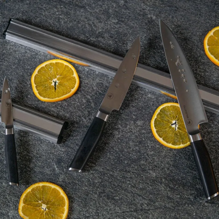 Oppbevar knivene samlet med en vegghengt knivlist. Knivlisten monteres med 2 medfølgende skruer. Knivlisten er produsert i kraftig aluminiumsmagnet og er 34 cm lang. Tørkes av med fuktig klut. Det er plass til mange kniver, men dette vil variere alt etter størrelsen på dine kniver. Maksvekt for magnetlisten beror på hvilket veggmateriale du har og festeteknikk.