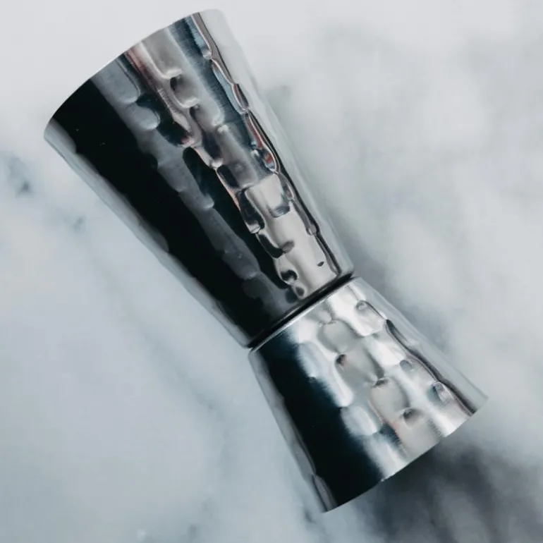 Målesett 30/60 ml hamret rustfritt stål. Cocktailmått / Jigger. Dobbeltsidig med 30/60 ml. Laget av hamret rustfritt stål.