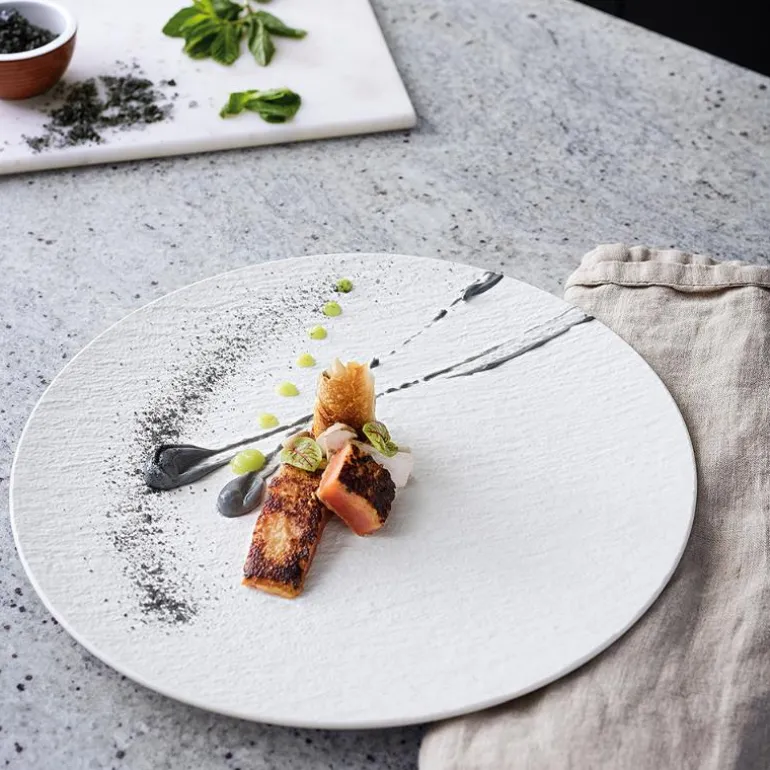 Manufacture Rock Blanc med skiferutseende er preget av matte og strukturerte porselenoverflater, en behagelig hvit farge og et ikonisk design. Villeroy & Boch har vært synonymt med denne typen innovativ bruk av materialer siden 1748.Nyt den italienske pizzaen på denne tallerkenen med unik stil. Tallerkenen kan like gjerne brukes som kake – eller ostefat. Premium porselen. Tåler oppvaskmaskin og mikrobølgeovn. 32x32cm.Nyt favorittretter med Villeroy & Boch.