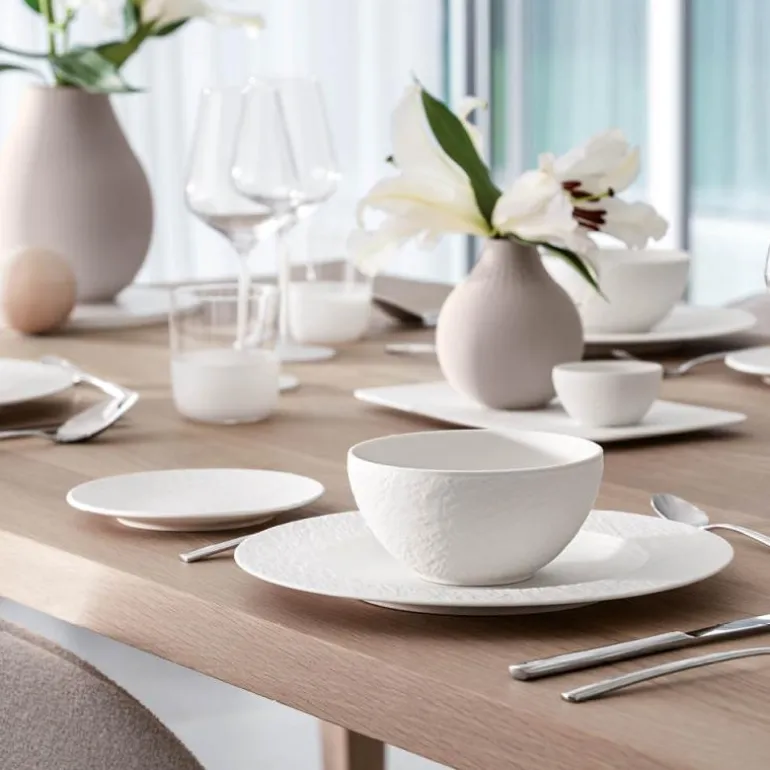 Manufacture Rock blanc glasskolleksjonen imponerer med sin sofistikerte design med en utsøkt matt hvit finish i premium krystallglass. Samlingen blandes harmonisk med både Manufacture Rock og Manufacture Rock blanc servise, og kombinerer på en attraktiv måte taktil appell med dagens trend for lyse fargetoner.