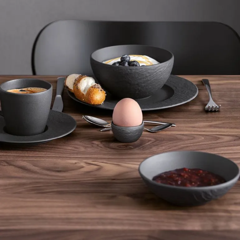 Det svart/grå Manufacture Rock eggeglasset fra Villeroy & Boch, 2,7 cm, gir en moderne start på dagen. Den perfekte følgesvennen til frokostbordet ditt.