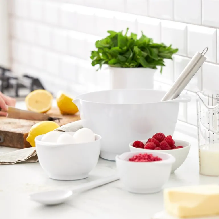 Den hvite Margrethe-bollen på 4 liter fra Rosti er den perfekte kombinasjonen av funksjonalitet og design. Med sitt klassiske uttrykk og smarte detaljer som et godt håndtak, praktisk helletut og sklisikker bunnring, er denne bollen en favoritt på kjøkkenet. Den oppdaterte Margrethe-bollen er laget av det resirkulerbare materialet Durostima®, som gjør den ekstra robust, knusesikker og kompatibel med både mikrobølgeovn og fryser. Dette allsidige kjøkkenredskapet er ideelt både til matlaging og servering, og med et tilhørende lokk kan bollen enkelt forvandles til en praktisk oppbevaringsløsning.