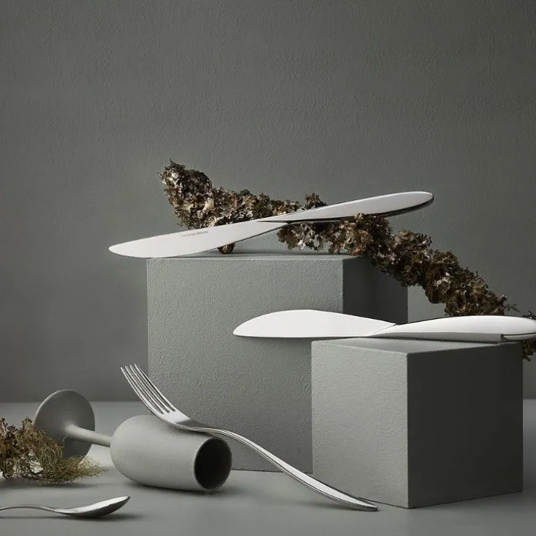 Maria bestikksett med 48 deler er designet av Odd Leikvoll i 2014, og kombinerer funksjonalitet med et naturinspirert design. Formen er hentet fra bølgeskvulp i Hardangerfjorden, noe som gir bestikket et mykt og delikat uttrykk. Den balanserte vekten gir et godt grep, og den polerte finishen tilfører en elegant glans. Settet leveres i en gaveeske, noe som gjør det til en utmerket gave eller et praktisk tilskudd til eget kjøkken.