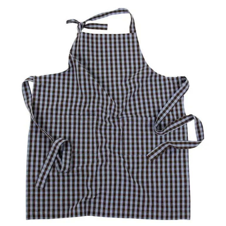 Maria forkle 70×82 cm i lys blå/brun fra A world of craft er laget i kraftig håndvevd bomull og har to lommer foran samt justerbart nakkebånd. Et funksjonelt og tidløst plagg for både hverdag og selskapsservering.