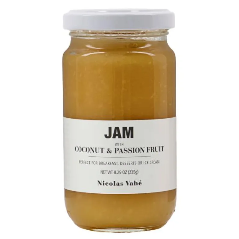 Et friskt og deilig syltetøy med smak av solfylte dager på en tropisk øy. Dette syltetøyet fra Nicolas Vahé er laget med kokos og pasjonsfrukt som du kan nyte når du vil ha noe ekstraordinært på brødet ditt. Nyt den på pannekaker også, eller i yoghurten din. De nøye utvalgte ingrediensene gir syltetøyet den rette typen smak som gjør at du vil ha mer.
