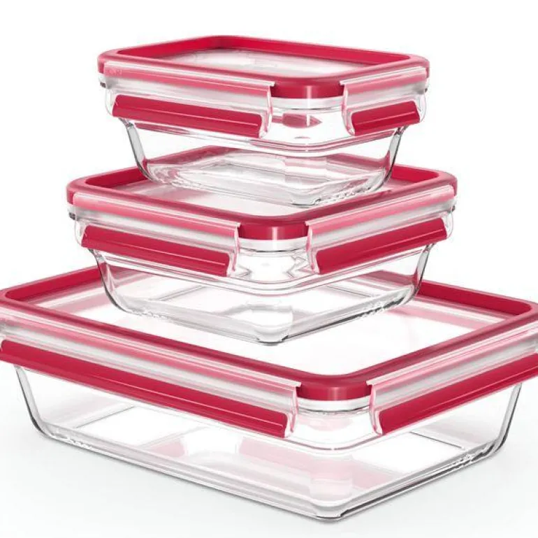MasterSeal matboks fra Tefal er et praktisk sett med tre beholdere i størrelsene 0,45 L, 0,8 L og 2 L. Beholderne er laget i borosilikat-glass, som tåler høye temperaturer og er motstandsdyktig mot både lukt og misfarging. Du kan tilberede, servere, oppbevare og transportere mat i én og samme boks.