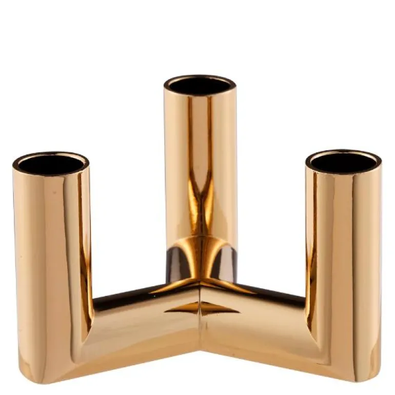 Vakker, gullfarget lysestake, Matrix med 3 armer, fra Uyuni lighting. Passer til mini LED kronelysene (D1,3 cm)Uyuni lighting lager kunstige stearinlysene med LED-flamme og batteri. Som er et trygt alternativ til de levende lysene. Det er også enda bedre for inneklimaet, da de ikke gir sot fra flammen. Lysene er allergivennlige og er trygge for små barn og kjæledyr.