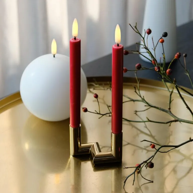 Matrix lysestake med 2 armer fra Uyuni lighting. Passer til mini LED kronelysene (D1,3 cm)Uyuni lighting lager kunstige stearinlysene med LED-flamme og batteri. Som er et trygt alternativ til de levende lysene. Det er også enda bedre for inneklimaet, da de ikke gir sot fra flammen. Lysene er allergivennlige og er trygge for små barn og kjæledyr.
