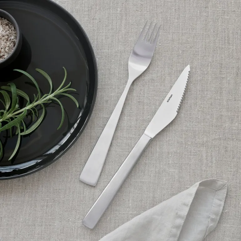 design. Maya 2000 har samme uttrykk som den klassiske ?Maya?, men når man ser på detaljene blir forskjellen tydelig: Maya 2000 er lengre og slankere enn sin forgjenger, slik at den triangulære basisformen som begge mønstrene er basert på, virker mer strømlinjeformet og passer til den moderne bordsetting. Grillknivene er skarpe og kommer 4 stk i en gaveeeske