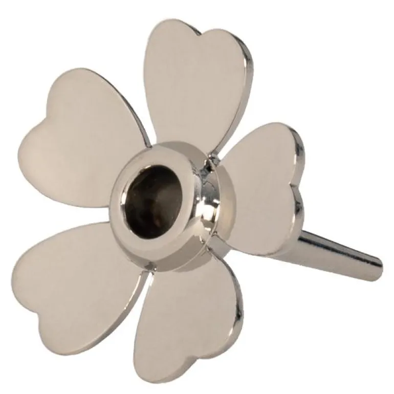 Sølvfarget, blomsterformet lysestake til kakelys, Me To You, fra Design House Stockholm. Søren Niedziella har formet lysestakene av ekte evigvarende materialer i stedet for kasteplast. Me To You blir igjen etter at lysene er blåst ut og festkaken er ferdig.