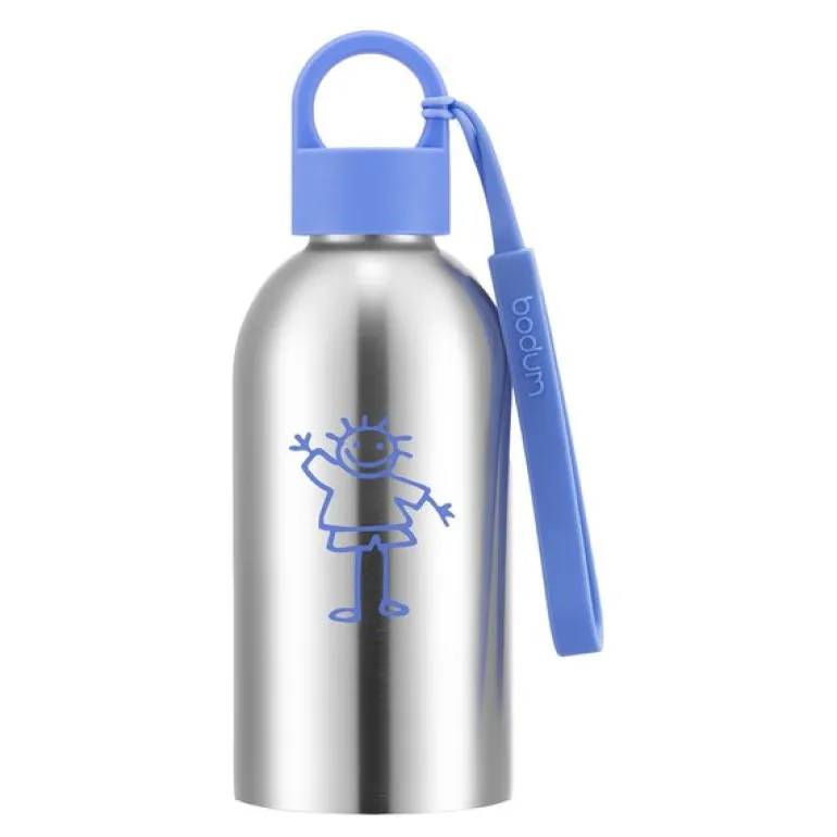 Melior drikkeflaske i blått er en praktisk følgesvenn for aktive barn. Den er laget i førsteklasses rustfritt stål og har dobbel vegg som holder drikken kjølig uten at flasken blir kald å ta på. En skrukork med silikontetning sørger for at flasken er helt tett, og en silikonrem på lokket gjør den enkel å bære.