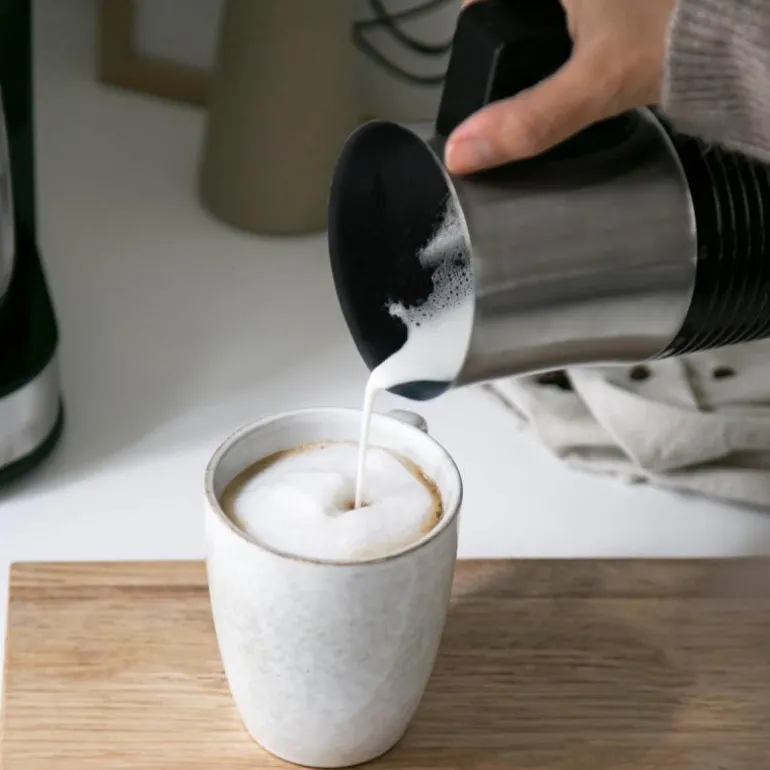 Champions Melkeskummer passer for deg som vil kunne nyte varm og skummende latte, cappuccino eller varm sjokolade hjemme. Den varmer raskt og effektivt opp og/eller skummer melken, og slår seg av når melken er klar. Den har et elegant utseende med en utside i børstet rustfritt stål, og non-stick-overflaten gjør den enkel å rengjøre etter bruk.- Effekt: 500 W- Kapasitet: 130 ml for skumming, 300 ml for oppvarming- Beholder i rustfritt stål- 2 visper (til henholdsvis skumming/oppvarming og kun oppvarming)- 360° dreieplate og trådløs karaffel- Ledningslengde: 0,75 m- Mål LxBxH: 15,0×10,0x20,1 cm- Vekt: 0,75 kg