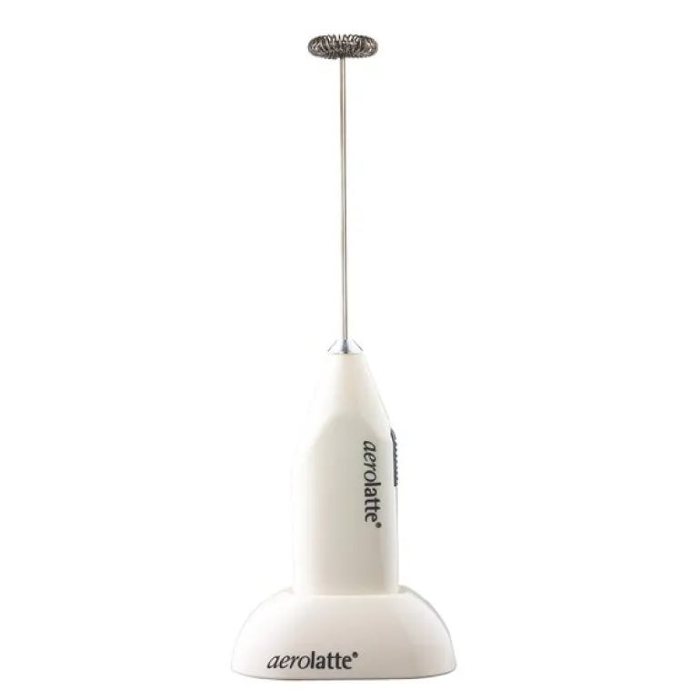 Den kremfargede melkeskummeren fra Aerolatte er et praktisk verktøy for å lage silkemykt melkeskum på bare 20 sekunder. Skummerens originale vispehode passer perfekt til både animalsk og vegetabilsk melk, og den slitesterke akselen og motoren gir pålitelig ytelse over tid. Medfølgende holder fungerer som et pent stativ, noe som gir et stilrent preg på kjøkkenet. Batterier inkludert, så du kan skumme melk umiddelbart.