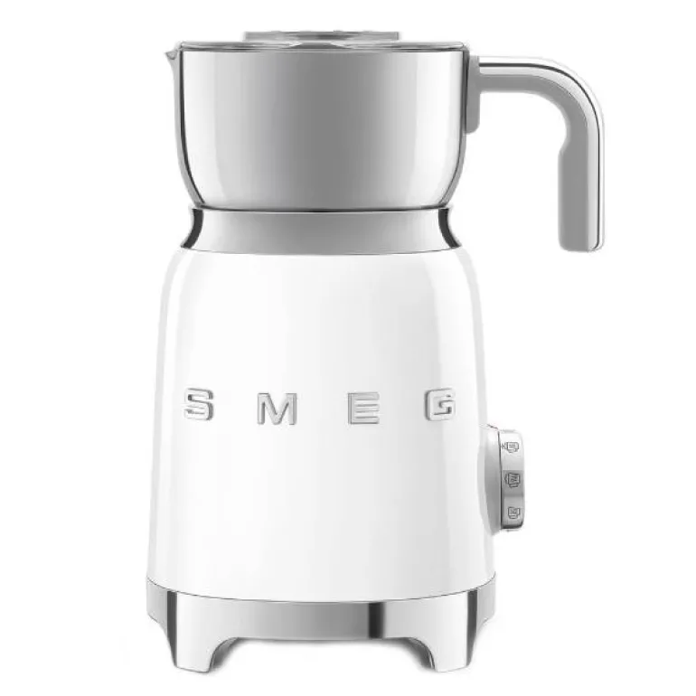 Smeg melkeskummer MFF11 600ml i fargen hvit. Melkeskummer med induksjonsvarmesystem: allsidig og multifunksjonell, den lar deg tilberede varme og kalde drikker, med eller uten skum.