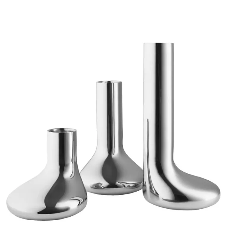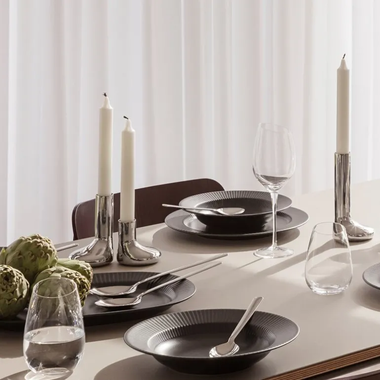 Mellow lysestake sett 3 deler sølv fra Eva Solo. Forgyll hjemmet med et sett sjarmerende Mellow lysestaker. Denne lille familien av lysestaker tilfører et sjarmerende og personlig element til interiør eller dekkede bord med sin skulpturelle og lekne form. Når lyset fra flammene reflekteres i deres blanke overflater oppstår et fortryllende og dansende lysspill.