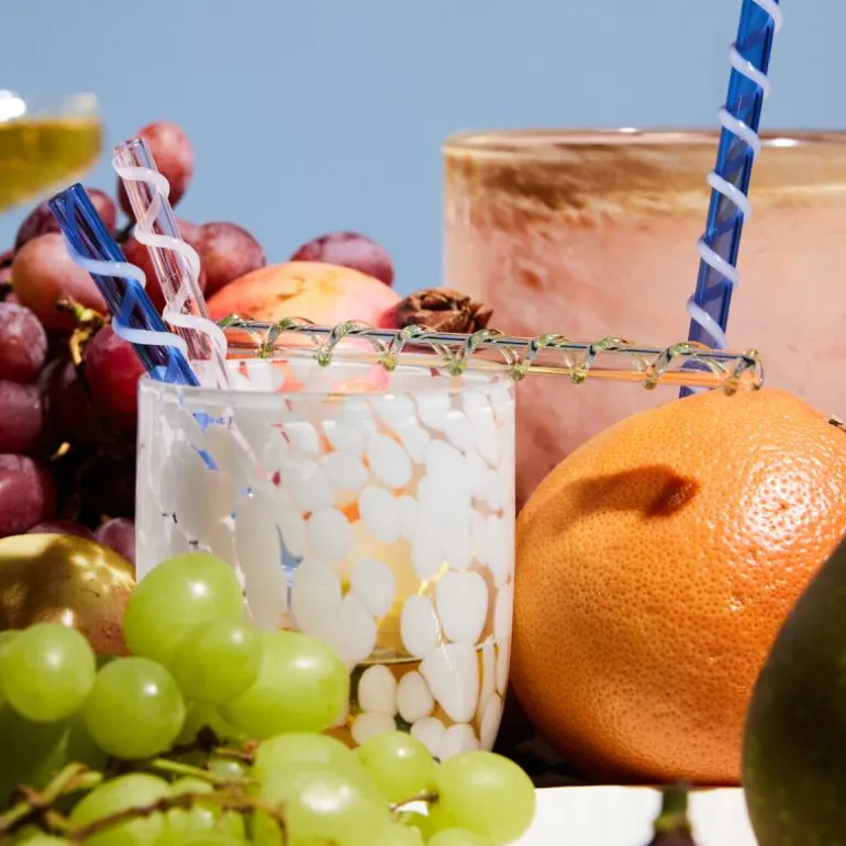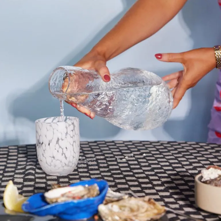 Som en lekker lakriskaramell – søt, deilig og uimotståelig. Laget av håndblåst glass med et lekent konfettimønster av midnattsvarte toner. Vi serverer drikke, juice, melk eller kaffe. Den kan brukes til telys og badet lyses opp med et fantastisk tannbørsteglass. Håndlaget, farge- og teksturforskjeller kan forekomme. Tåler vask i oppvaskmaskin. Design Byon Studio. Leveres i 2-pakninger i Byon-boks.