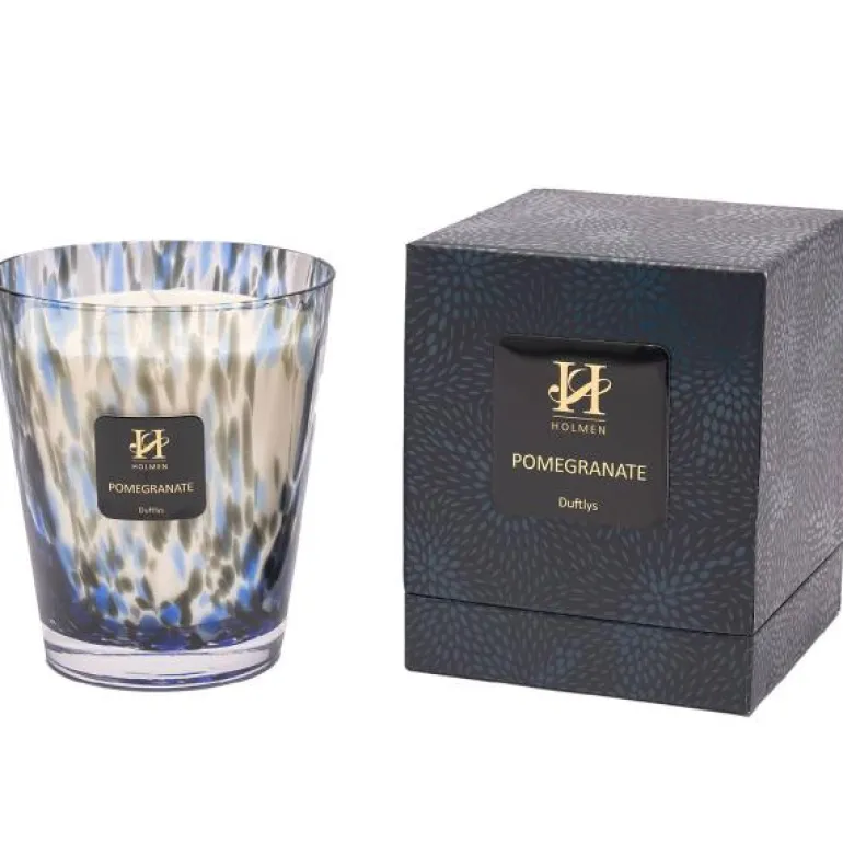 Milano – Duftlys Granateple Blå 13,5×13,5×16,4 Glass, voks