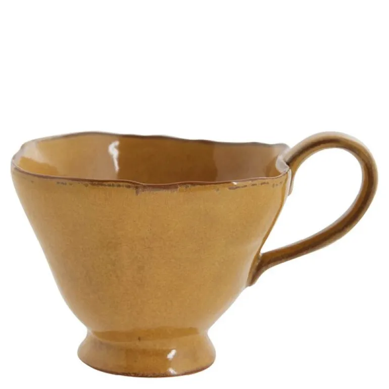 Kruset rommer 30 cl og måler 14 x 11 x 9 cm, perfekt for både morgenkaffen og en avslappende kopp te. Den gule nyansen tilfører en myk, naturlig tone som fremhever seriens autentiske estetikk.