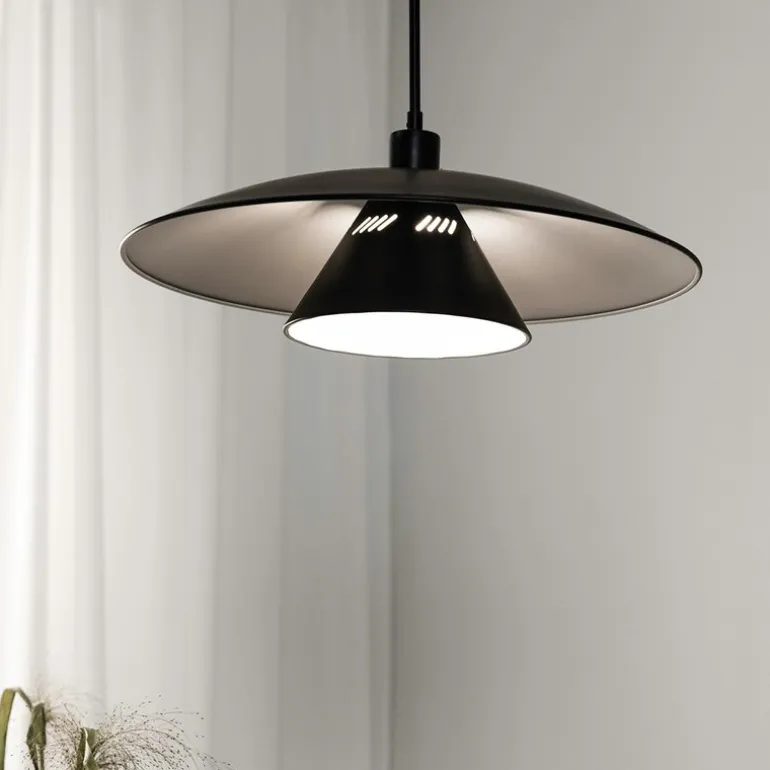 Lampen er enkel å plassere i forskjellige interiørstiler, fra skandinavisk minimalisme til mer klassiske eller rustikke miljøer. Den svarte skjermen skaper en nøytral base som gjør at lampen lett smelter inn, uten å miste sin eleganse eller funksjonalitet. Belysningen den gir bidrar til å skape en avslappende atmosfære uansett hvor den henger.