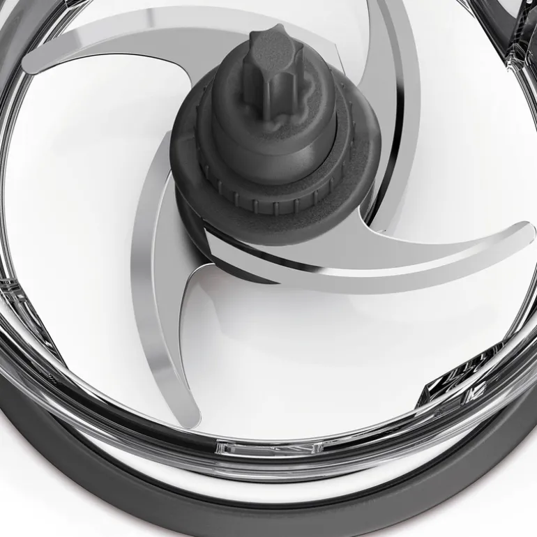 Det avanserte hakkesystemet med fire kniver i hovedskålen gir overlegen ytelse, spesielt med større ingredienser, og sikrer en jevn behandling hele veien gjennom.