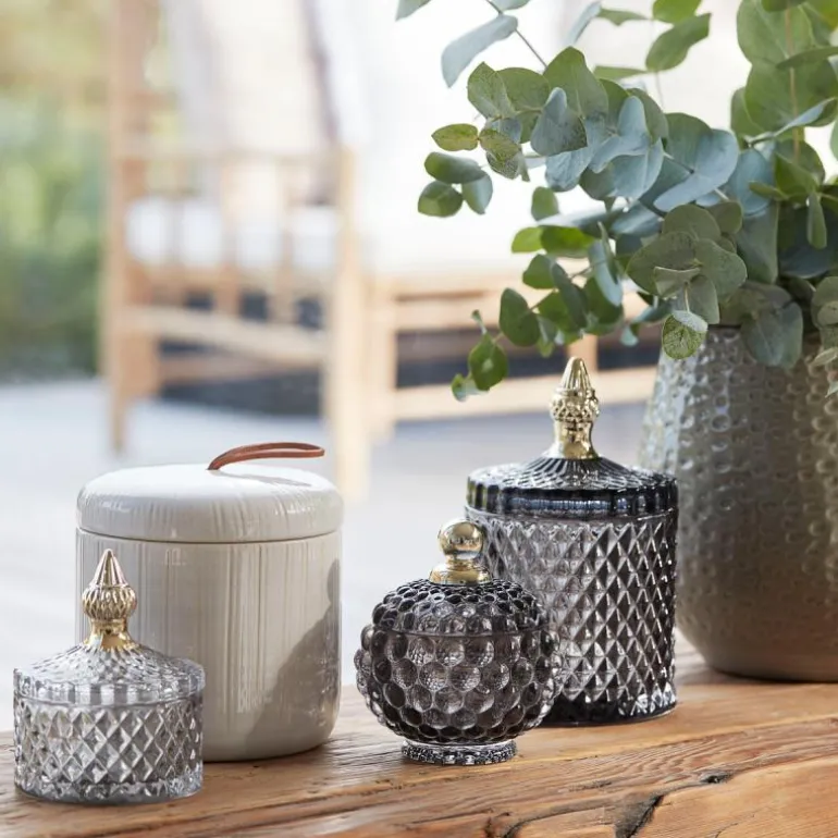 En krukke fra Miya-serien fra Lene Bjerre er ikke bare en glasskrukke – det er et ekte kunstverk! Denne krukken skaper umiddelbart oppmerksomhet i hjemmet med sitt elegante design og unike glassmønstre. Den er ikke bare et dekorativt element, men også utrolig praktisk. Bruk krukken til å oppbevare alle dine smykker eller andre småting på en smart og stilig måte.