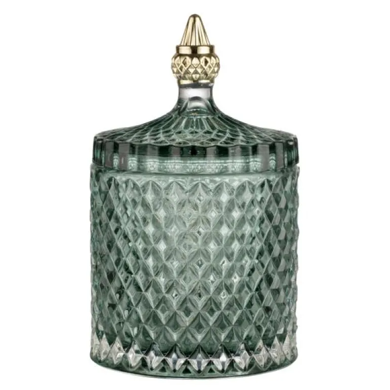 Den elegante Miya-krukkens størrelse gjør det enkelt å plassere og dekorere ethvert rom i hjemmet ditt. De vakre og intrikate glassmønstrene på krukken gir en særpreget karakter som skiller seg ut og legger til en følelse av eksklusivitet. Enten du plasserer den på en hylle, et bord eller i et skap, vil Miya-krukken være et imponerende tillegg til din innredning og gi både praktisk oppbevaring og estetisk nytelse.
