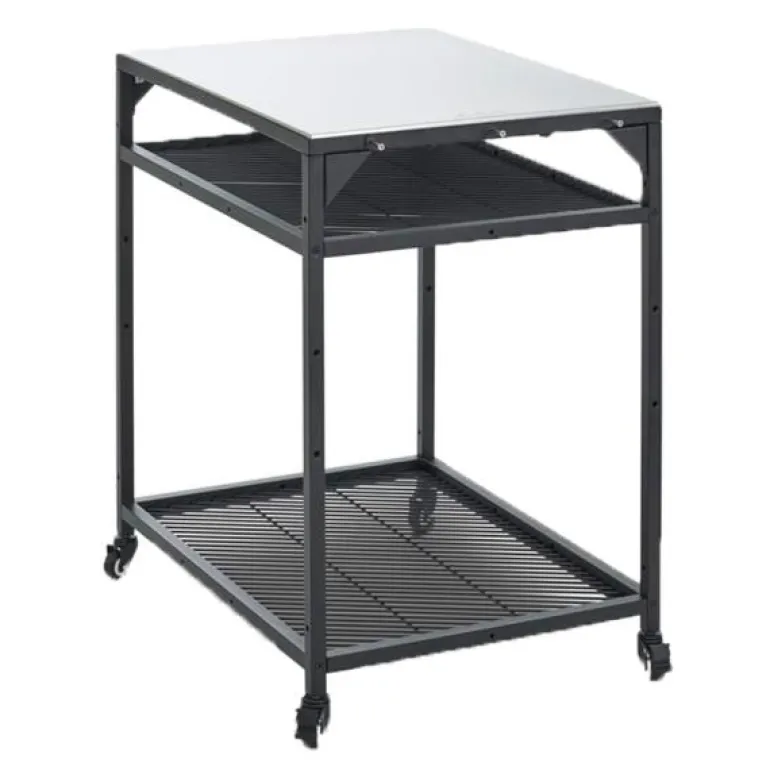 Bordet er 90 cm høyt, 60 cm bredt og 80 cm langt. Det er utstyrt med fire hjul (to låsbare), så du enkelt kan flytte rundt på pizzaovnen om nødvendig. Topplaten er laget av rustfritt stål, mens rammer og hyller er laget i pulverlakkert karbonstål.