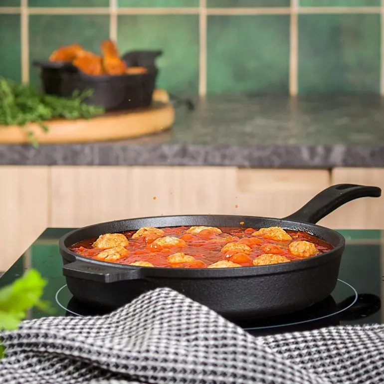 Moi stekepanne 18 cm svart i støpejern er en del av den anerkjente Moi-serien, og er designet for å møte behovene til enhver matentusiast. Med sin solide konstruksjon er den perfekt for steking, grilling og servering av tapas. Støpejernets robuste egenskaper sikrer en jevn varmefordeling, noe som gir en utsøkt stekeoverflate på alle typer retter. Denne stekepannen kombinerer funksjonalitet med tidløs design, og er et uunnværlig redskap på kjøkkenet for både hverdagsbruk og spesielle anledninger.