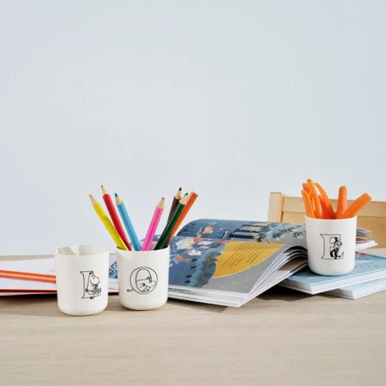 Mummiene er sentrale karakterer i en rekke bøker og og tegneserier av den svensk-finske illustratøren og forfatteren Tove Jansson. Moomin ABC er utviklet spesielt til barn, med myke former som gjør det enkelt å holde i. Grafikken inspirerer til lek med bokstaver, og kan vekke barnets interesse for å lære å lese. Mummi ABC koppen kommer i 26 versjoner med hver sin bokstav , samt en av de spennende og morsomme figurene fra Mummienes verden. Koppen rommer 0.2 l og er laget i ABS plast, som er slitesterkt. Tåler både oppvaskmaskin og mikrobølgeovn og er fri for BPA, Phtalater og andre skadelige stoffer. Det finnes også en drikketut, til de minste barna, som kjøpes separat.