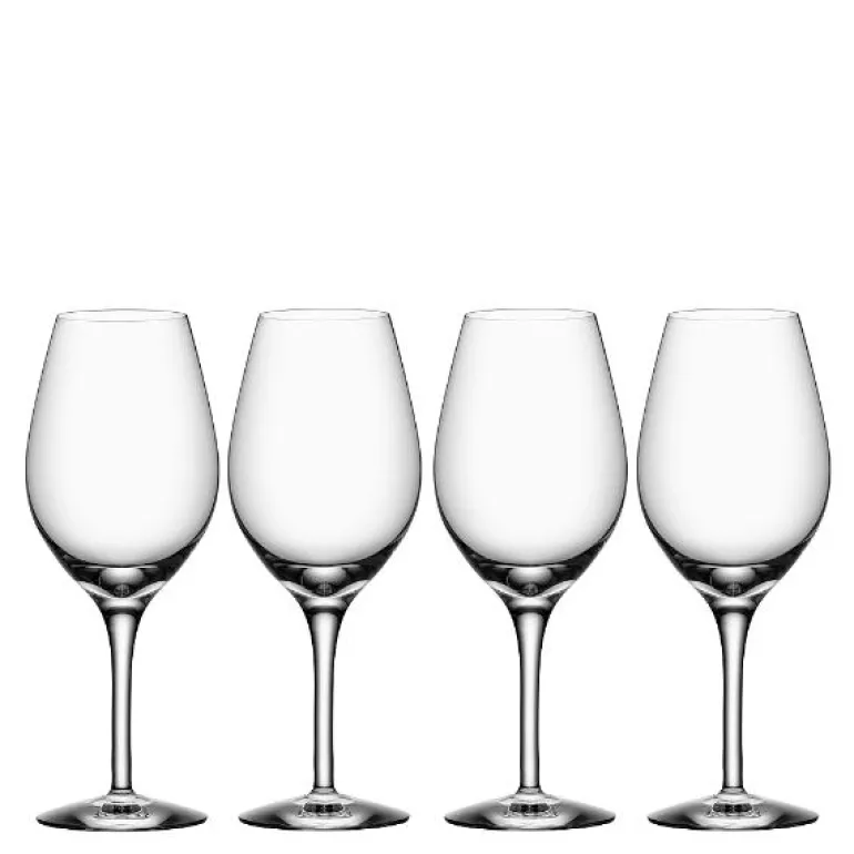 Hvitvin stettglass med rund klokke. Dette er klart og laget i krystall. Glasset rommer 44 cl og kommer i 4 pk.