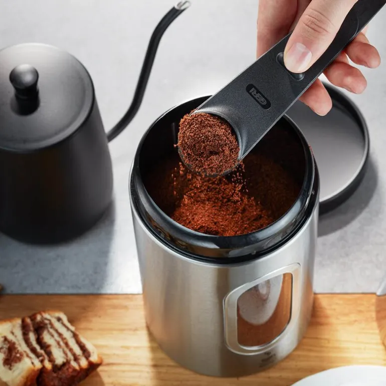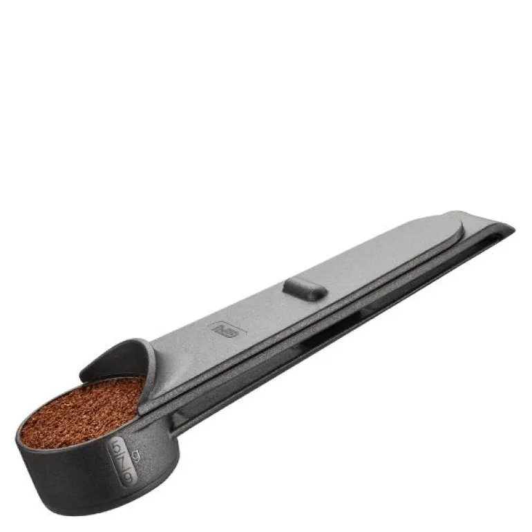 På tide å våkne og lukte på kaffen: Ingen barista verdig navnet kan klare seg uten denne måleskjeen med integrerte nivåer. med en praktisk niveller for å måle kaffen nøyaktig fleksibelt justerbart volum: 5g, 7g eller 9g inkludert utvendig skala ergonomisk håndtak L 8,0 cm, B 3,2 cm, H 23,5 cm plast Tåler oppvaskmaskin Den perfekte koppen kaffe er alltid et spørsmål om riktig mål . MORENO kaffemåleskje sørger for at du alltid bruker akkurat den mengden kaffe du trenger til din personlige favorittkaffe. Skjeen er innstilt til å holde 5 gram, og kan justeres med en forsiktig berøring av fingeren til å holde 7 eller 9 gram – avhengig av hvor sterk du liker den. Den praktiske skrapen garanterer at nøyaktig den angitte mengden forblir i skjeen. Enkelt, presist, praktisk – typisk for GEFU. Ytterligere tips for kaffeglade gartnere: Kaffegrut er en utmerket plantegjødsel, spesielt for pelargonier, roser og rhododendron.