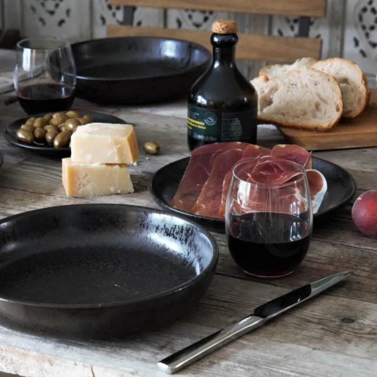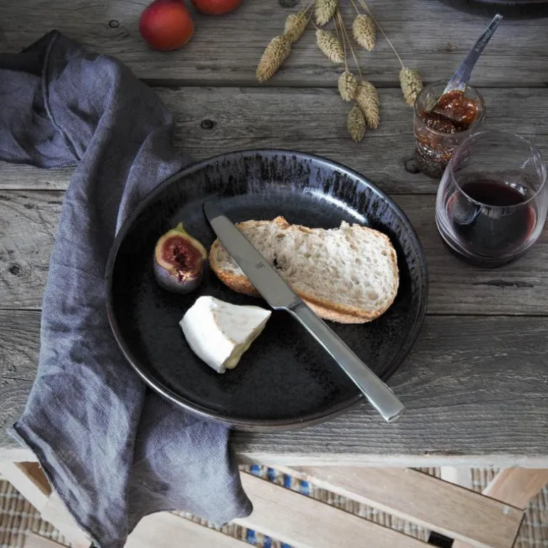 Rustikt servise med en flott reaktiv glasur. Ingen produkter blir helt like med denne type glasur. Lager et levende, hyggelig aktivt bord. Fargene spiller i sort, grått og over i noe varmere mørk brun.