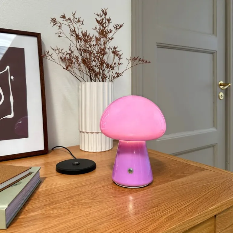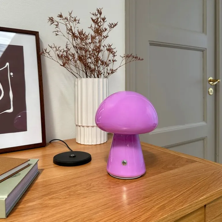 Morkel Mushroom lilla oppladbar sopplampe er en stilfull og praktisk belysningsløsning som gir deg friheten til å skape en koselig atmosfære hvor som helst i hjemmet. Med sin trådløse og bærbare design kan lampen enkelt flyttes fra rom til rom, slik at den tilpasser seg dine behov – fra stuen til soverommet, eller til og med som en praktisk lyskilde på kontoret.
