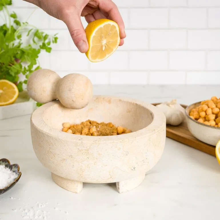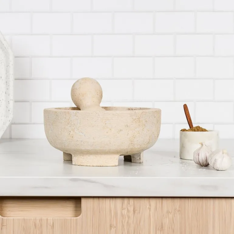 Materialets soliditet sikrer lang holdbarhet og stabilitet under bruk. Merk at marmor kan absorbere farger fra sterkt fargede krydder – så rengjør alltid mørtelen for hånd med varmt vann og en børste for å holde den i best mulig stand.