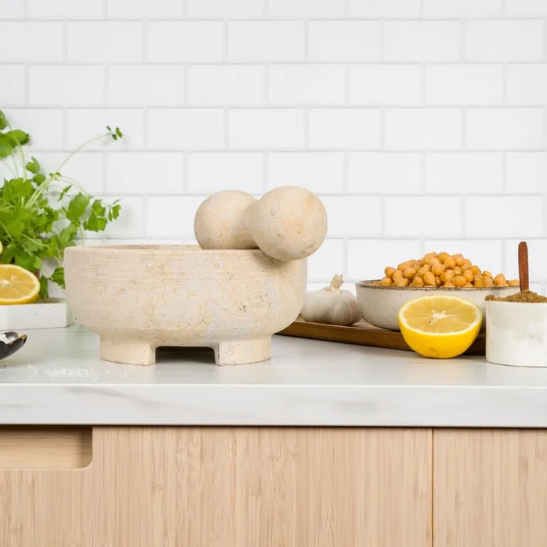 Sabor morter 20 cm i beige marmor er både et funksjonelt og dekorativt tillegg til kjøkkenet. Den lyse marmoren med sin naturlige eleganse gjør den like vakker som den er praktisk. Med en robust konstruksjon og tilhørende marmorstøter er denne morteren ideell for å effektivt knuse og male krydder, urter og hvitløk. Den store, runde formen gir god plass til å jobbe med ulike mengder, noe som gjør den allsidig og brukervennlig.