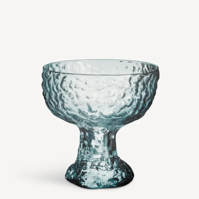 Produksjonen skjer med sirkulært glass, der knust glass og overskuddsmateriale brukes for å skape subtile variasjoner i fargetonen. Den romslige coupeformen med en kapasitet på 35 cl gjør glasset ideelt for servering av champagne og prosecco, men det passer også perfekt til desserter. Designet av Åsa Jungnelius og produsert i Kosta, med en gjennomført balanse mellom tradisjon og innovasjon.