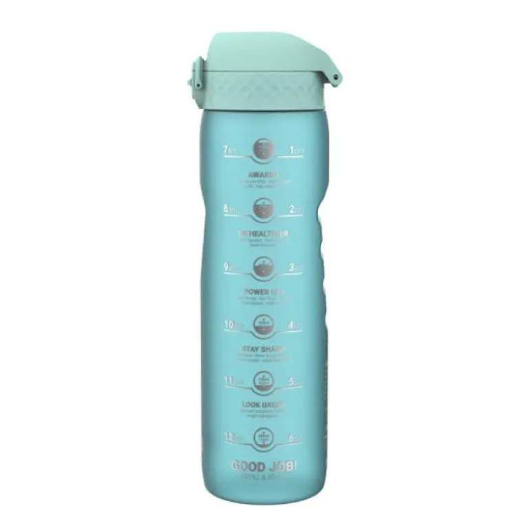 Glemmer du også å drikke nok væske i løpet av dagen? Med motiverende drikkeflaske (1L) fra ION8 blir det mye enklere å holde styr på det. I tillegg til sitt myke og blå utseende, og en motiverende drikkeskala, er flaskene fulle av detaljer som gjør dem til et must-have i ethvert hjem. Lokkets flip-cover er utstyrt med en one-touch knapp som lar deg betjene flaskene med én hånd, og det triple sikkerhetslåset gjør flaskene helt lekkasjesikre, selv om du har flasken i vesken.