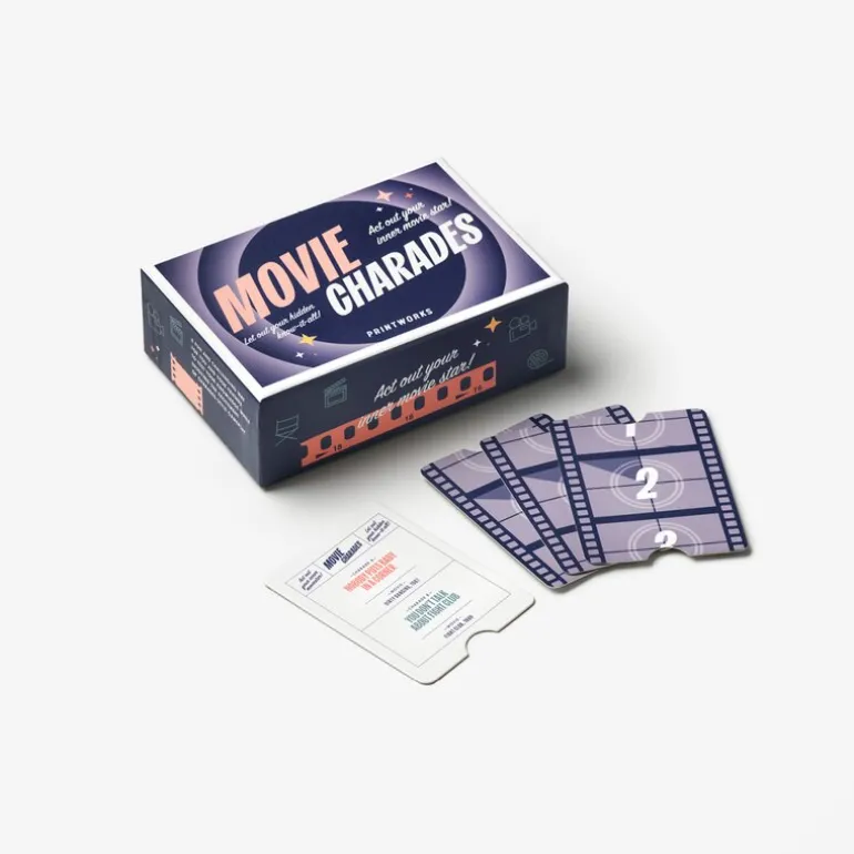 Gjenskap legendariske filmscener med Movie Charades fra Printworks – et underholdende kortspill som setter både fantasi og skuespillerevner på prøve. Perfekt for sosiale sammenkomster der latteren står i sentrum.