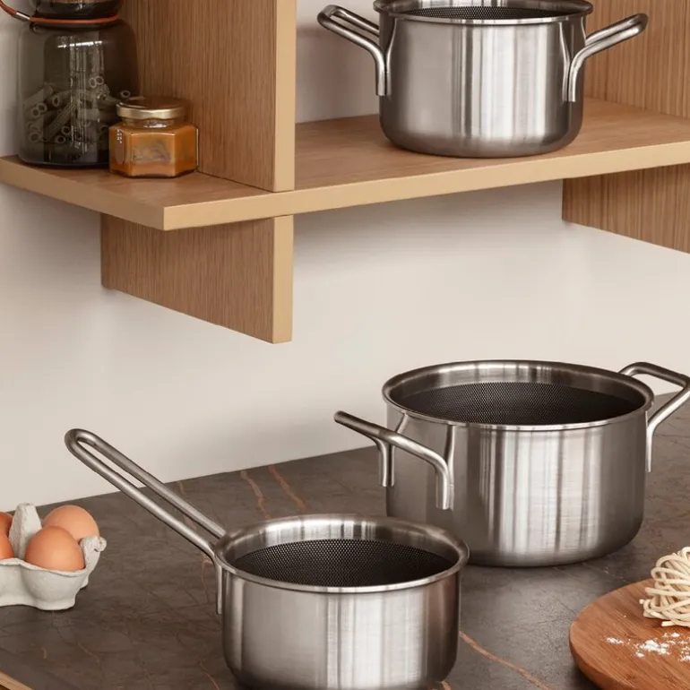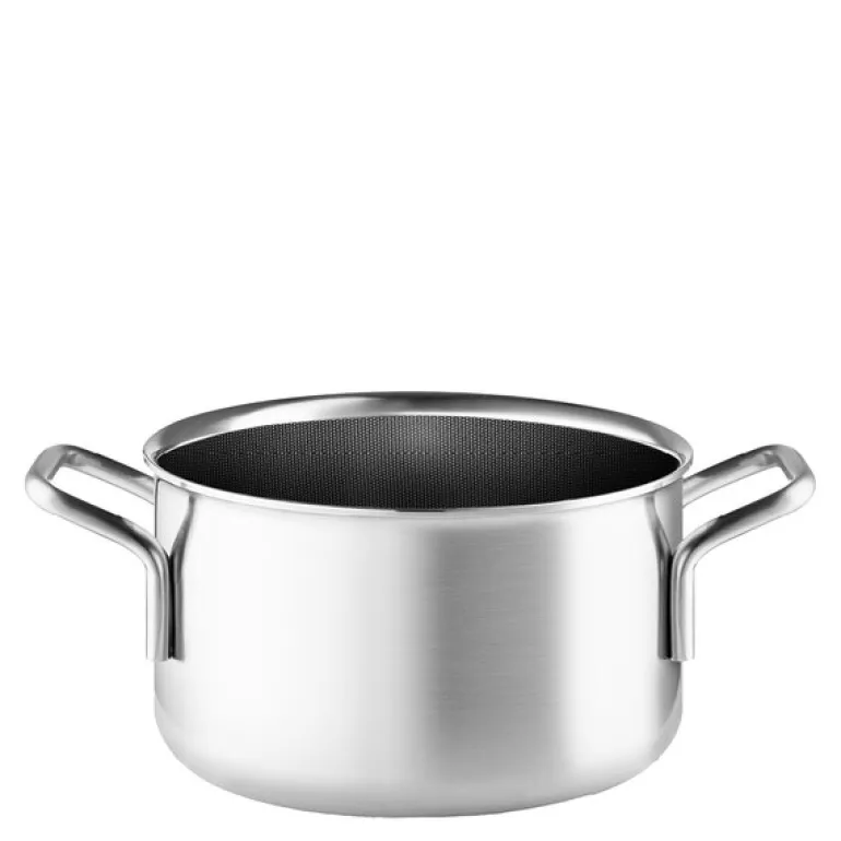 Det ikoniske designet fra Ole Palsbys Eva Trio-serie fra 1977 gir gryten klassiske egenskaper som kalde håndtak, hellekant og mulighet for stabling. Gryten passer perfekt inn i serien med lokk og andre produkter fra Eva Trio.