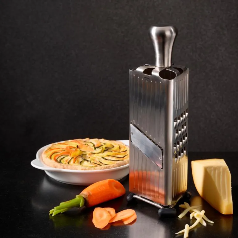 Kompakt multirivjern til å rive og raspe alt du kan tenke deg samtidig som det tar lite plass. Multirivjernet kombinerer et fint og et grovt snittejern i et kjøkkenredskap til mange formål, f.eks. rive parmesan, raspe poteter samt snitte gulrøtter m.m. Skjæreoverflaten kan fjernes for rengjøring. Silikonføttene sørger for at du kan arbeide uten at rivjernet flytter seg på bordet. Inkludert beskyttende etui.
